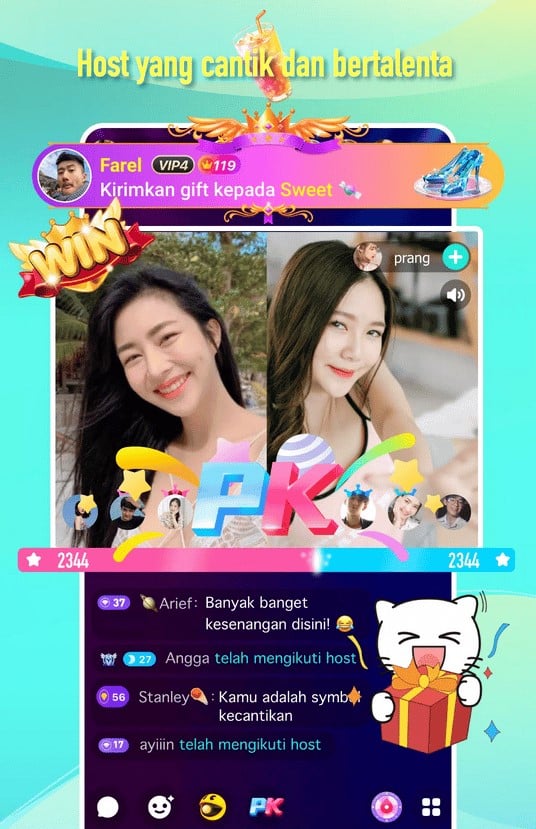 Selain itu, mirip perangkat lunak live bar bar lainnya, kamu mampu mengirim atau mendapatkan anugerah virtual. Jika kau ialah streamer, pemberian ini ialah penghasilan utamamu.
