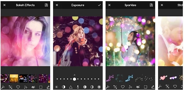 Aplikasi video bokeh baru pertama adalah Real Bokeh, juga dikenalnya sebagai Efek Cahaya. Aplikasi pengeditannya ini menawarkan efek-efek bokeh yang realistis untuk video dan efek pencahayaan yang bagus.