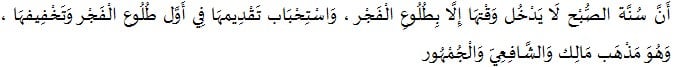 Artinya: “ Shalat sunnah Shubuh tidaklah dilakukan melainkan setelah terbit fajar Shubuh. Dan dianjurkan shalat tersebut dilakukan di awal waktunya dan dilakukan dengan diperingan. Demikian pendapat Imam Malik, Imam Syafi’i dan jumhur ulama.” (Syarh Shahih Muslim, 6: 3).